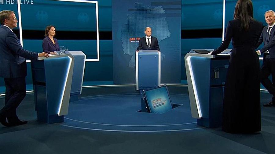 Tv Triell : V0tlvnadcvk6zm / September lädt linda zervakis die kanzlerkandidaten und kanzlerkandidatin zum dritten triell im deutschen fernsehen.. Dissens bei der klimapolitik, einigkeit beim umgang mit der pandemie: Baerbock, laschet und scholz müssen punkten. Zum ersten mal treffen die kanzlerkandidat:innen von cdu/csu, spd und bündnis 90/die grünen in einer gemeinsamen fernsehdiskussion aufeinander. Selten waren so viele wähler unentschlossen. Nach dem aufeinandertreffen von baerbock, laschet und scholz kann niemand mehr behaupten, der wahlkampf sei langweilig.